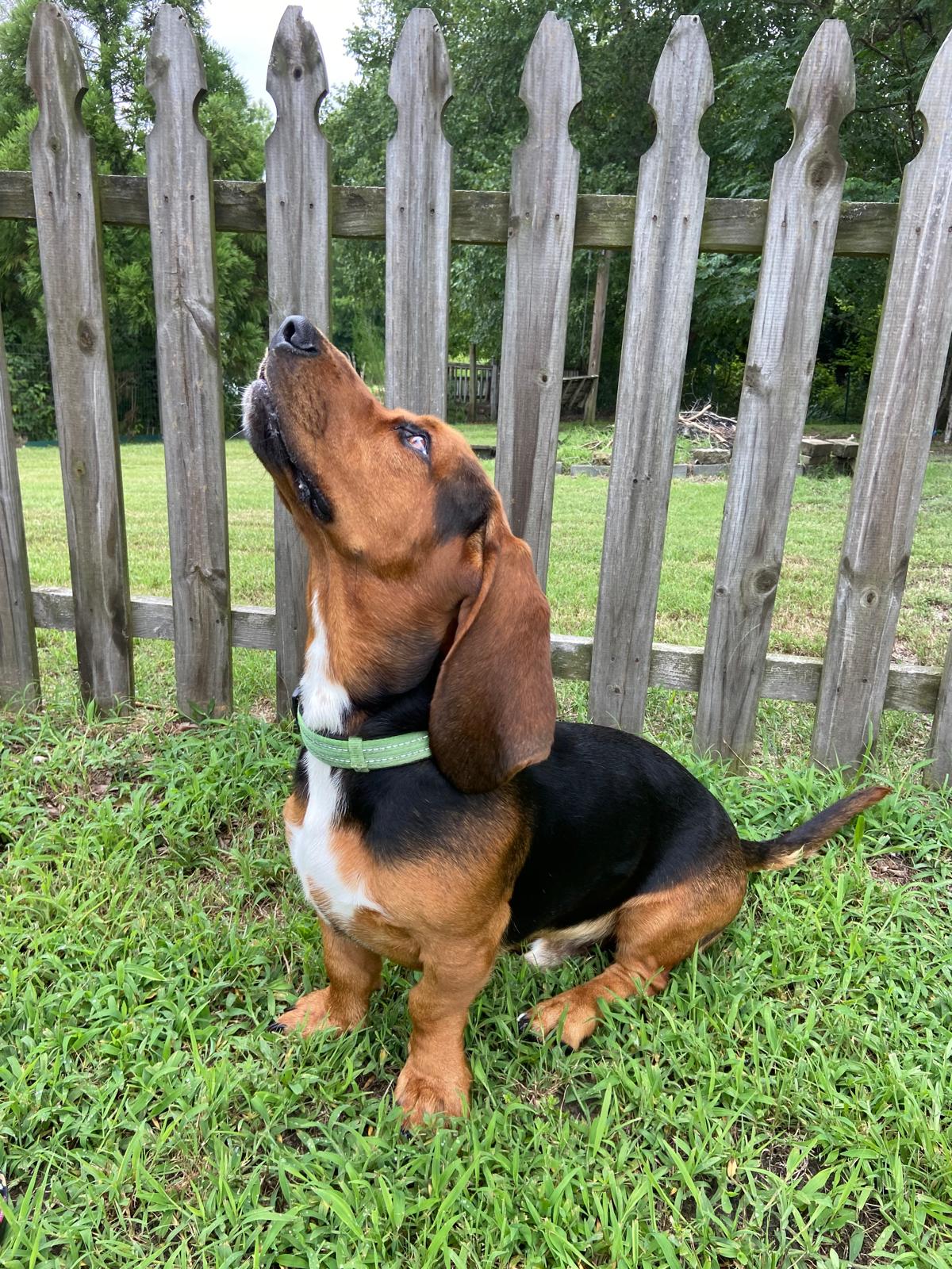 more about her...Shax is the reason why we got in to Basset Hounds. He was an emotional support dog for my daughter. He is a very active dog , that loves to run . He is a beautiful tricolor. He is not aggressive at all and is always ready to cuddle or play. He is Lemon's boy friend.